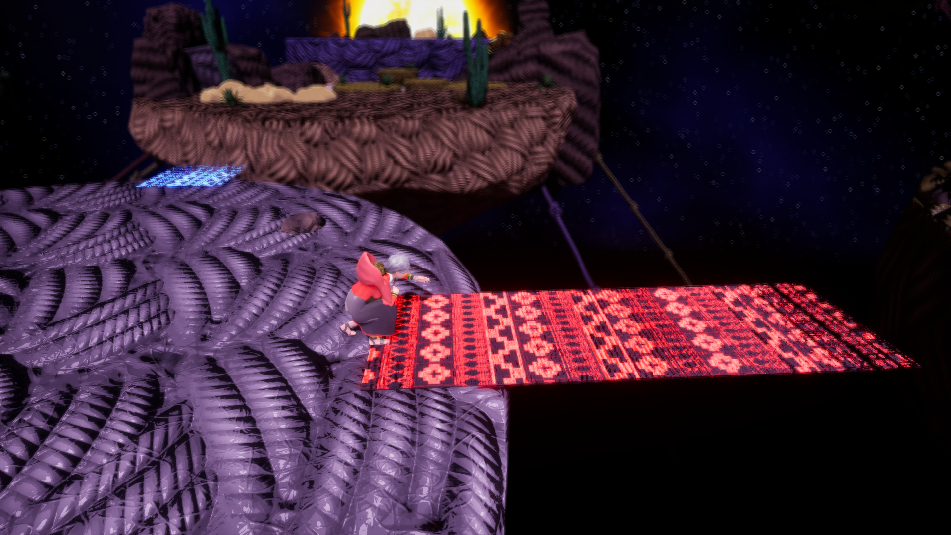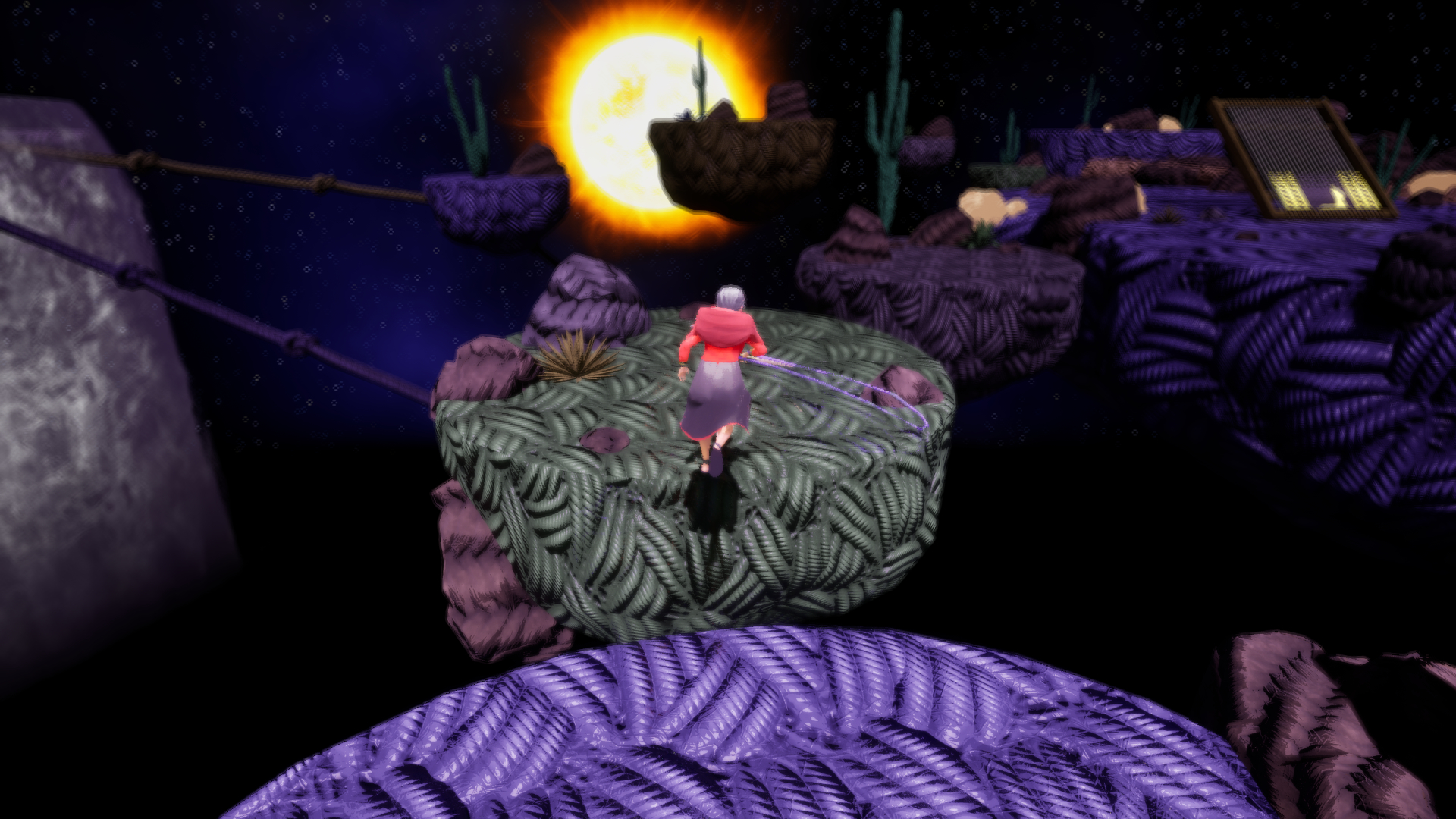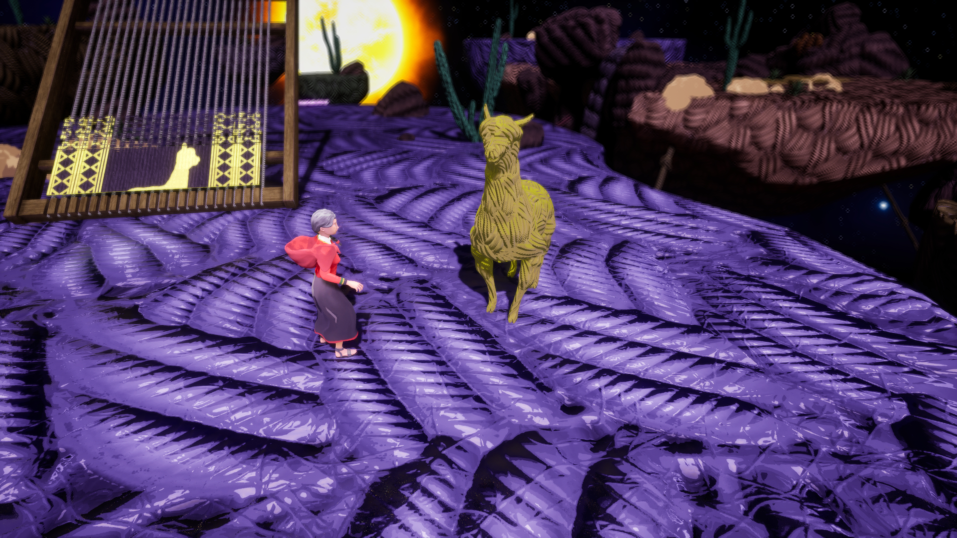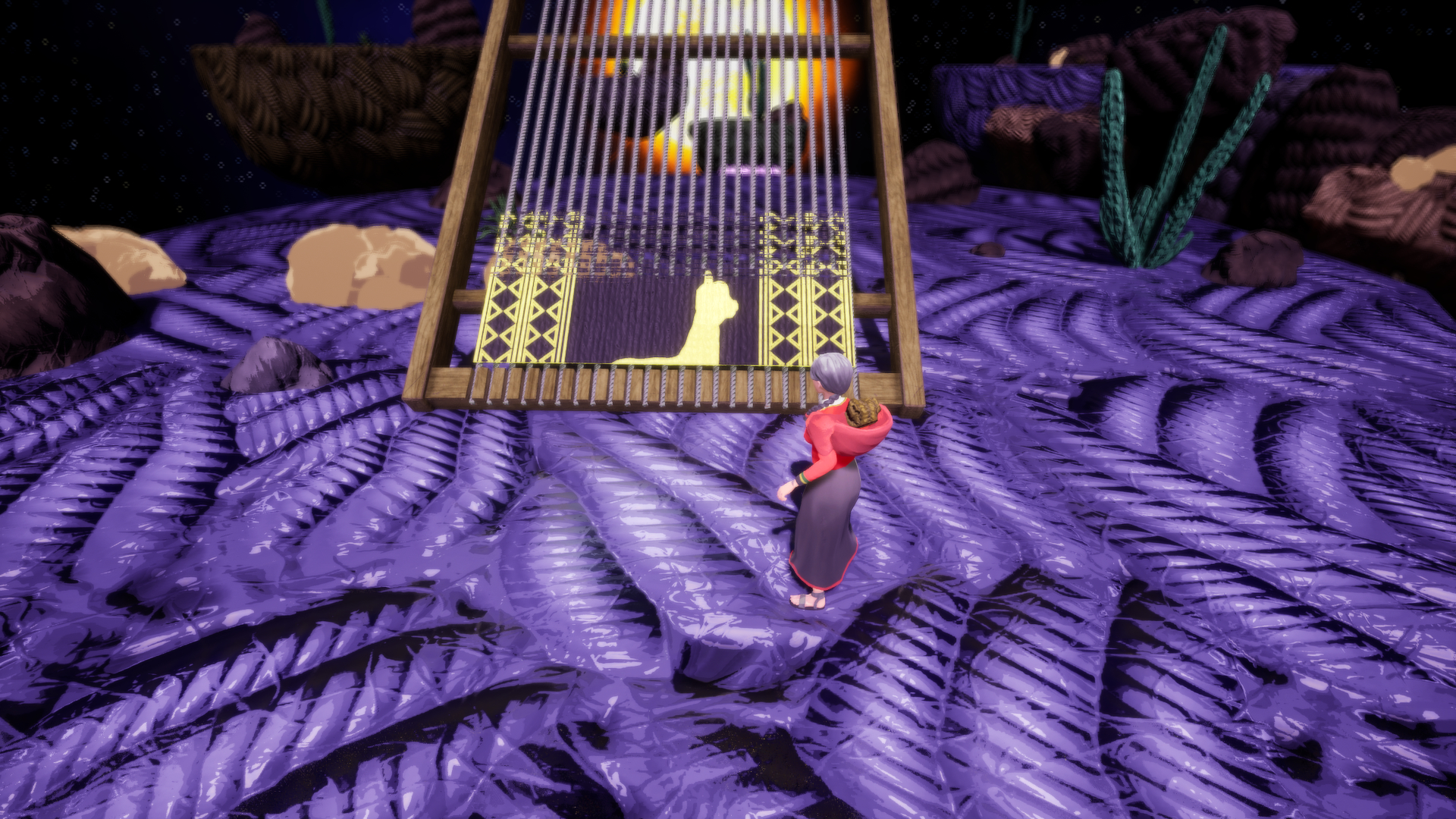 Aclla has the ability to weave with the help of her magic needle, but to do so, she needs to collect the wool scattered throughout the world. The wool can be collected using her gathering tool, or “Pushka,” from various sources such as objects, enemies, and animals, and will allow her to weave everything from fabrics that serve as bridges to help her make her way, to her precious looms. On the other hand, in the dream world there will be dangers, such as corrupted wool, which seeks to prevent Aclla from finishing her looms.